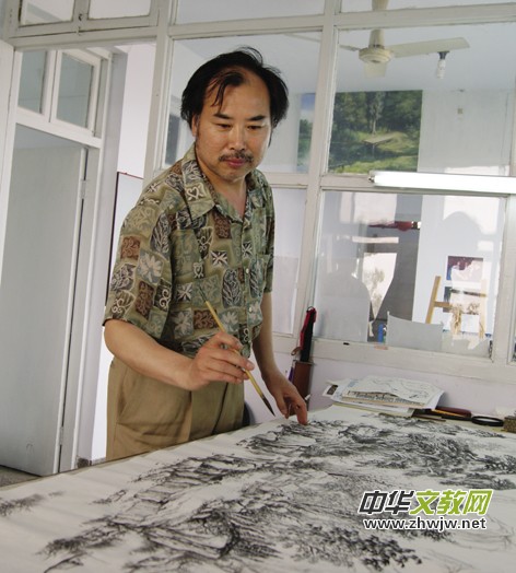當(dāng)時(shí),他們家西鄰就是內(nèi)黃縣劇院,去劇院玩是很方便的,所以他認(rèn)識(shí)了劇團(tuán)的在縣里很有名氣的舞臺(tái)美術(shù)師劉殿卿老師,從此他就跟劉老師學(xué)習(xí)舞臺(tái)美術(shù)和油畫。由于有基礎(chǔ),很快就掌握了舞美設(shè)計(jì)繪制技能,獨(dú)立的設(shè)計(jì)一臺(tái)全劇的布景。家院的東鄰是林業(yè)局,有位領(lǐng)導(dǎo)發(fā)現(xiàn)西鄰家的學(xué)生畫的不錯(cuò),就請(qǐng)他過去幫助畫宣傳畫,經(jīng)他設(shè)計(jì)繪畫出的板面非常奇特新穎,社會(huì)上評(píng)價(jià)很高,后引起了縣文化局、文化館的注意。一次去文化館朋友那里,隨便畫了幾筆鉛筆畫,被館長(zhǎng)發(fā)現(xiàn),驚訝的看著眼前的這位小伙子,才方知林業(yè)局精彩的宣傳板面出自他手,爽快的說(shuō),以后你就到文化館工作了。這期間,先后舉辦了雷鋒、“4.12”大屠殺和批林批孔政治展覽,又不斷參加縣、地、市各類美術(shù)作品展并獲獎(jiǎng),深受好評(píng)。當(dāng)時(shí),他才只有17歲。