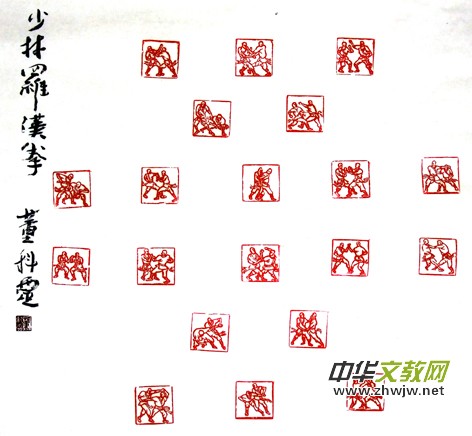 董科靈先生是印壇上一位隱士,做人低調(diào)謙遜。刀法精湛,出神入化。自上世紀九十年代以來,刻制過多種類型的線條簡練、生動,造型優(yōu)美、精致的印章,如少林武打搏擊印、奧運會中國運動員圖譜印、三十三觀音化身印、48個媽祖故事神像印等。在2008年奧運會期間,他的奧運會中國運動員圖譜印被相關(guān)單位采用、印刷和發(fā)行。其制印水平高超,數(shù)量龐大,各類印章達千枚之多。而且一個系列又一個系列的印章層出不窮,驚世駭俗。他把漢畫、崖刻、剪紙等工藝溶進了自己的創(chuàng)作中,已經(jīng)創(chuàng)作出一批高質(zhì)量的石印畫,形成了新的印風(fēng)和篆刻流派——印畫董。為了弘揚中國的印文化,本報特設(shè)專版介紹董科靈的肖形印作品。