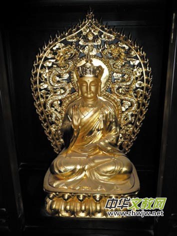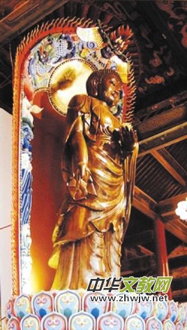 整個(gè)修繕過程中,最大的亮點(diǎn)就是位于接引殿內(nèi)一尊目前世界宗教界最大的金絲楠木的阿彌陀佛。佛像高5米,蓮花座高1.1米,金剛須彌座高1.1米,背光高6.5米,佛像本身呈現(xiàn)金絲楠木原色,這在全國來說都是非常罕見的,說到這里,我們不得不提起這尊佛像的設(shè)計(jì)及雕塑者馬云峰先生。