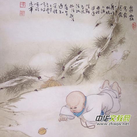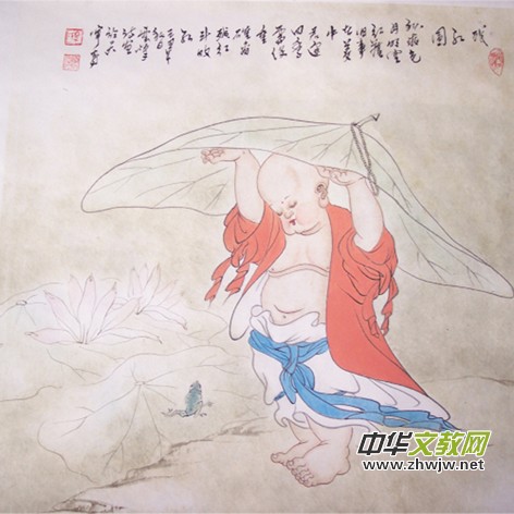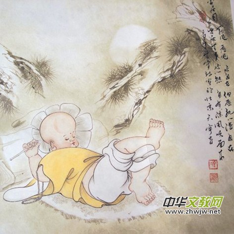 馬云峰除了精于佛像的雕塑外,也非常擅長佛教人物畫的創(chuàng)作。談到這方面的內(nèi)容,馬先生說佛教題材的繪畫不但要有藝術(shù)功底,還要了解佛教幾千年的發(fā)展史,只有理解了佛的內(nèi)涵,才能更好地表現(xiàn)作品對于當(dāng)今的社會(huì)意義。歷史上不少大家都留下許多佛像精品,所以要在這方面有新的建樹絕非易事。在傳統(tǒng)的水墨人物畫的基礎(chǔ)上,無論佛教高僧、尊者還是小和尚,他都著重面部的刻畫,將素描手法運(yùn)用到作品中,水墨線條筆到意到,筆未到而意無盡,他的《殘紅圖》、《安居圖》等通過栩栩如生、憨態(tài)可掬的小和尚的墨線造型,藝術(shù)地再現(xiàn)了中華佛禪文化和佛禪藝術(shù),由于水墨線條具有通俗化、生活化、人性化的特點(diǎn),使得整個(gè)畫面臻于出神入化的審美境界,而人物造型則是千姿百態(tài),各眾生的體態(tài)、相貌、表情、動(dòng)作、飾物等相互迥異,突出個(gè)性藝術(shù),強(qiáng)化佛像藝術(shù)的傳神;并集真、善、德、福、神、妙、常、樂、凈、定、慧等人間諸神妙好于一身,處處閃耀著佛禪思想、佛禪精神、佛禪智慧的光輝,處處顯示出佛教文化的崇高與神圣。同時(shí)畫卷上的娟秀書體無疑彰顯畫家的率真與禪意,隨緣任運(yùn),物我兩忘,佛到書到,書到畫到,畫到神到,書法與佛像藝術(shù)相映成趣,相得益彰,無疑提升了畫卷的文化品味和藝術(shù)價(jià)值。