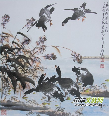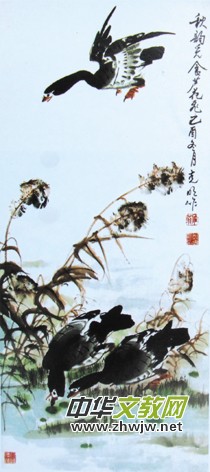 著名書畫家,尤以畫蘆雁著稱于當(dāng)今畫壇,享有當(dāng)代“雁翁”之美稱。