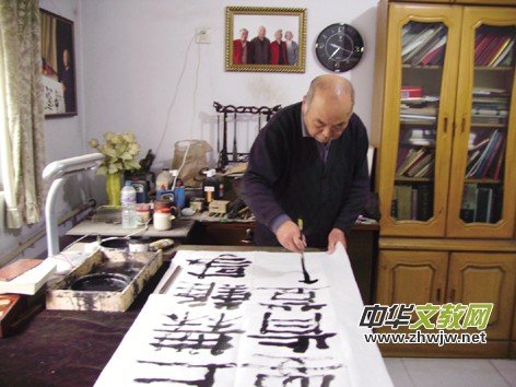 1958年馬喜成先生從濮陽來到安鋼當了一名工人,干過多種苦活累活工種,盡管當時的工作很辛苦,晚上回到宿舍,就一頭扎到桌上,拿著拾來的廢紙練字,直到深更半夜才上床睡覺。雖說那時還有沒得到一位正規(guī)的書法老師指導,但勤能補拙,加上自己的悟性好,能夠熟練的掌握仿宋體和黑體字的技巧。十年磨一礪。1965年文化大革命開始,大街小巷,廠里廠外的墻壁都粘滿了大字報。在那個大批判的浩劫歲月里,廠里能寫好大字報的人不多,馬喜成被廠里抽出來專門寫大字報。體裁的寫法要求的十分嚴肅,不能出現(xiàn)漏字、掉段、錯字的現(xiàn)象,否則就被挨整挨批。他每次寫的時候都小心翼翼,不敢有半點絲毫差錯,越是心細,嚴要求水平才能得到提高。正是通過寫大字報日后成為書法家的,馬喜成也不例外。當然,嚴格的說大字報還不屬于完整意義上的書法,但確實很能提高寫字水平。后在安陽群藝館也開辦起書法培訓班,這對愛好書法的人群來說無疑是一大喜事。馬喜成也深深的認識到。字雖寫的不錯,但離專業(yè)書寫的章法、布局還有一定的差距,也就是說并沒有掌握好書法的要領(lǐng),得從正規(guī)訓練開始,找準突破口,日后形成自己的藝術(shù)風格。