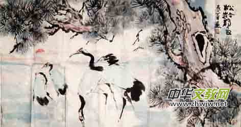 每逢假期,他就游歷祖國的山川大地,以大自然為師,沿河而上,穿梭在彎曲小道,細(xì)察品味山水、花鳥、林木。餓了就吃口硬饃頭,渴了就飲口山泉。夜里要么就住進(jìn)農(nóng)家小院,找不到地方就露宿山林。短短的幾年功夫,他的花鳥畫達(dá)到了較高的水平,筆功深秀、清雅、生動(dòng),色彩柔美,給人以渾然天成的意趣和質(zhì)樸的生活氣息。如作品《鶴翔九天》,旭日東升,紅彤彤的海面迎來一群飛舞的仙鶴,在空中自由翱翔,百態(tài)千姿,栩栩如生,和睦相處的鶴群呈現(xiàn)出溫婉、安詳、警世和哲思,充滿著浪漫的藝術(shù)張力和視覺效果,不愧為一幅佳作。