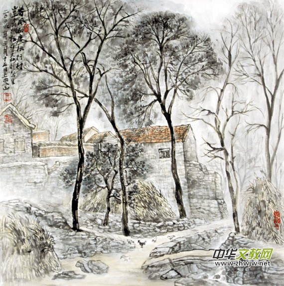作品名:春風(fēng)初度桃行村 尺寸:68cm×68cm 年代:2009年 作者:王界山