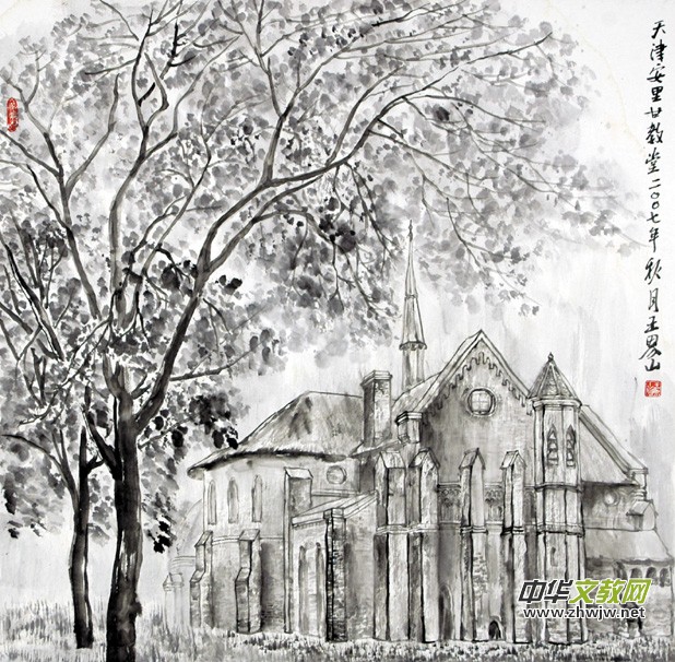 作品名:天津安里甘教堂 尺寸:67cm×67cm 年代:2007年 作者:王界山