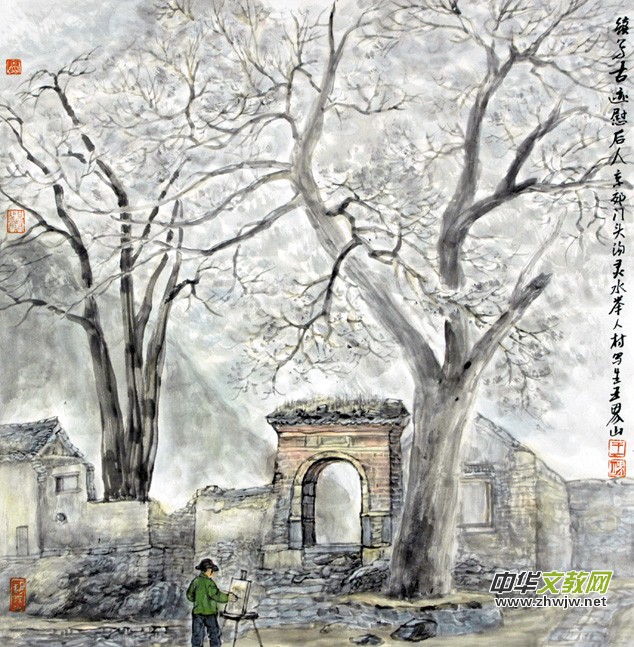 作品名:續(xù)寫古跡慰后人 尺寸:67cm×67cm 年代:2008年 作者:王界山