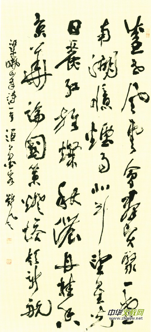 鄭東坡先生,筆名鄭風(fēng),號殷都小民。1932年出生于河南滑縣,自幼喜愛書畫,對書法有獨到之處。這主要得益長期自學(xué)。從進(jìn)入社會參加工作后,不管工作多么繁忙,也要擠出來一點點時間練字。而且是幾十年來如一日,不停地對歷代名家字帖臨習(xí)。顏、柳、歐、趙、真、草、隸、篆各體皆愛,尤喜行草。由于傳統(tǒng)功力扎實,又不斷吸收各家之所長,加之心靈手巧,古今貫通,習(xí)之既久,逐步形成一種飄逸灑脫、沉穩(wěn)莊重的個人風(fēng)格。他的視野開拓,思維敏銳,知識面寬,非常有助于書法藝術(shù)不斷向前提高,將自己的素養(yǎng)和個性逐漸滲透在字里行間,步入了隨心所欲的意境,已然具有自我書風(fēng),筆走龍蛇,連綿環(huán)繞,筆斷意連,氣韻生動,給人以蓬勃的朝氣和靈動的妙趣。這種超凡脫俗的自我情趣就像三九嚴(yán)冬的傲雪寒梅,愛我所愛,無怨無悔,只為伊人飄香,令人回味無窮。可以這么說,鄭老的書法是心融于筆墨之中,竭力追求風(fēng)神與骨力,大氣磅礴和厚重的筆畫,如萬斛泉源,出自胸臆,奔涌直瀉,別開生面,鼓舞人心,完全是他真實情感的釋放和對藝術(shù)追求的自由空間,所產(chǎn)生出來的藝術(shù)效果,書法不僅是他的心境寫照,還是對生活藝術(shù)的深刻感悟和精神創(chuàng)造。
