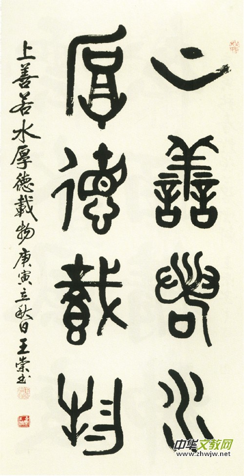 本人自幼酷愛書法藝術(shù),以蓮池為趣、寫字為樂、研究諸家碑帖、博采眾長、師承古人、繼承傳統(tǒng)、不斷創(chuàng)新、形成了雅俗共賞的個人風貌。真、草、隸、篆、行皆能、尤以行書、榜書見長。上世紀七十年代初、為安陽縣躍進渠隧洞、渡槽題名并刻石十多處。1990年以來、書法作品曾多次參加國內(nèi)外書法賽事活動、并多次入展和獲獎、入編書法大辭典及作品集十部、1999年至2001年曾三次入選河南省書協(xié)舉辦的畫展、2002年作品入展入編河南省委宣傳部、省文化廳、省文聯(lián)舉辦的《振興中華》畫展及作品集、在《中國書畫報》社舉辦的“嘉翰杯”全國中老年書畫大賽中獲優(yōu)秀獎并入編作品集。