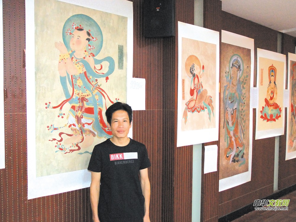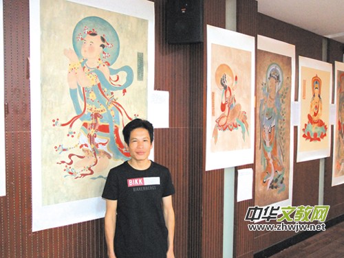 青年書畫家林清泉以工筆重彩的筆墨形式展現(xiàn)了敦煌、永樂宮壁畫無窮魅力,十年面壁、終成正果。近幾年臨摹壁畫數百平方米,得到國內外收藏家的認可。縱觀神秘而絢麗的畫卷,欣賞大家只有在壁畫原址、博物館、甚至在大英博物館都難得一見的作品,在欣賞的同時,人們的心靈得到凈化和洗禮,為促進敦煌文化交流、建筑和諧社會做出一定貢獻,更是為偉大祖國華誕獻上一份厚禮。 本報記者 雨潤