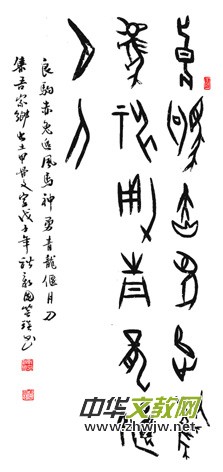 《作家報·藝術(shù)世界》主編、書法家楊紹穆先生曾在新國甲骨文個人書法展時賦詩一首:“安陽甲骨欲尋根,雨潤書法不同倫。點(diǎn)畫拙樸能膺古,抱殘守缺布局新。兼師南宮二王法,讀貼著述百家文。”