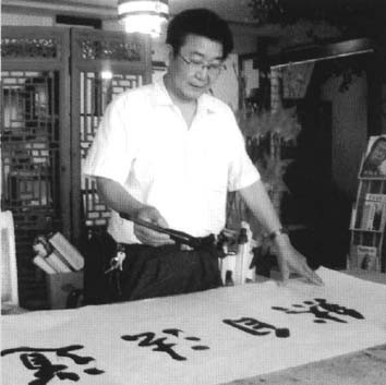 最后,讀讀忠義兄的“書”藝,方知字如其人也。眾所周知,長(zhǎng)期練習(xí)書法是荒寒的、枯燥的,但在這其中又寓有它所特性:遼闊與壯美,這里是孤寂的,但孤寂中又透露出寧?kù)o平和,沒(méi)有刀光劍影烽火煙塵,波瀾疊起。而是文勢(shì)跌宕,搖曳生姿,披星戴月,凌霜冒雪,雨后云散日出的景觀。似有自得之趣,是那么閑適和舒暢。忠義習(xí)書法幾十年來(lái),早已感受其中苦于樂(lè),與不必多言訴說(shuō)。他的書風(fēng)尊傳統(tǒng),得古法,氣韻生動(dòng),精湛嫻熟,筆力遒勁,樸實(shí)渾厚。從他所創(chuàng)之作的字里行間中可以看到運(yùn)筆灑脫,境界空曠,結(jié)構(gòu)奇逸高古,章法茂然齊整,字體流暢,十分講究文字的淵源關(guān)系。在書法上將楷、行、草雜糅,這既是對(duì)于古圣先賢創(chuàng)用文字的一種敬仰與崇拜,又是對(duì)儒、釋、道等傳統(tǒng)思想文化及文字發(fā)展講究尋根探源的一種固有的學(xué)術(shù)態(tài)度。東漢書家蔡邕在《筆論》中說(shuō)道:“書者,散也,欲書先散懷抱,任情恣性,然后書之。,’忠義也是這樣的,與許多文人士大夫們一樣在作品中注入了自己的感情,從而使作品更具生命力,不是單純地追求形式上的美,而是在乎內(nèi)心世界的情感和情緒上的起伏變化,使人仿佛置身于作品中,在妙趣橫生的書法作品中感悟的是巍巍高山,浩浩大江,颯颯秋風(fēng),杲杲旭日,壯膽而行。在賢良對(duì)策中,以史鑒戒,為國(guó)家的中興進(jìn)獻(xiàn)良言。不管是功敗垂成也好,精誠(chéng)都不會(huì)滅。有多少天下事,都是在風(fēng)聲、雨聲中醞釀,天下的太平與民生息息相關(guān)。志士仁人常已天下為己任,的確英氣可鞠。有的人一生懷才不遇,壯志難酬,但思想意志從不因歲月蹉跎,產(chǎn)生苦悶心情,滿腔憂憤。從不趨炎附勢(shì),阿諛?lè)畛校?dú)自操琴,閉戶視書,結(jié)廬在人境,安然自得。一旦國(guó)家有難,山河破碎時(shí),這些文弱書生就敢挺身而出,赴湯蹈火,在所不辭,“捐軀赴國(guó)難,視死忽如歸。”馳騁沙場(chǎng),殺敵立功,御邊保國(guó),慷慨悲壯,去留肝膽兩昆侖,為國(guó)效力無(wú)怨無(wú)悔,表現(xiàn)出奮發(fā)踔歷的精神,壯志四海遠(yuǎn)名揚(yáng),這就是他們內(nèi)在所具有的傲骨,非常人所有。