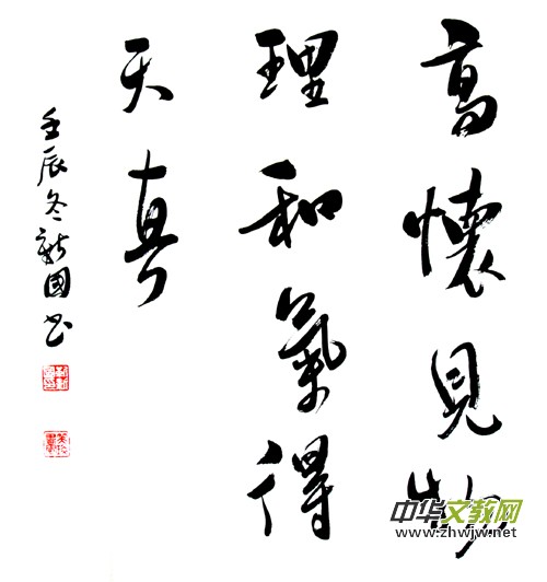 行書:高懷見物理,和氣得天真。