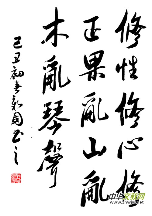 笑琰的行書以米字為基礎(chǔ),博采眾長,用筆圓潤遒勁、灑脫,柔中寓剛;結(jié)體謹嚴、自然凝重、他追求流暢、大氣、清新、樸茂的藝術(shù)風貌。