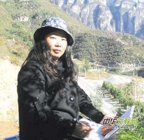 初中畢業(yè)時,本來她想上高中,將來考美術(shù)院校,實現(xiàn)做一名畫家的夢想。但受外公的影響,非要讓她選擇學醫(yī)。拗不過去,最終上了衛(wèi)校。畢業(yè)后,也沒有從事醫(yī)務工作,而是到農(nóng)村幼兒園教繪畫。自己白天教孩子,晚上就臨摹芥子園、三希堂畫譜和中國傳統(tǒng)山水畫,這些都是平時省吃儉用買來的書。還深入研究倪瓚、董其昌、黃公望、黃賓虹、范曾等大家的畫風,廣采博納,永不停息,熟練掌握了各門各派之間的畫技。每到節(jié)假日時,就打點行裝深入名山大川寫生,觀察不同山體在四季中的變化。愛菊對自己要求的非常嚴格,堅持做到“眼觀、腿勤、腦靈、手快”四點要求,這樣才能快速畫出不同季節(jié)山間景色的變化。有時為了觀察山色霧煙,凌晨不到5點就早早起來爬山。即便眼前是一片“煙霏”,蒙蒙霧氣。她照樣在迷霧中摸索前進,出于高處,入于低處,出于低處,又入于高處,時高時低,時低時高。此情此境,豈不是饒有情味,富于畫意嗎?煙霏既盡,朝陽熠耀。“山紅潤碧紛爛漫”的景色,不斷吸引著她繼續(xù)前行,穿梭于樹林之中。清風拂衣,泉聲淙淙,清淺的澗水十分可愛。于是就赤著雙腳,涉過山澗,讓清涼的澗水從足背上流淌,整個身心都陶醉在大自然的美妙境界之中了。在這優(yōu)美的環(huán)境里,她捕捉不同景物在特定時間、特定天氣里所呈現(xiàn)的不同光感、不同濕度和不同色調(diào)。敏捷地把握雨后天晴,秋光照耀下的山花,澗水所特有的光感、濕度和色調(diào),才把那“山紅澗碧”的美景表現(xiàn)得鮮艷奪目。有時霎那之間,浮云掃盡,眾峰顯露。仰面看去,那高峻陡峭的山峰,就好比擎天柱撐著天空。讓她豁然開朗,和意想不到的奇險明快之感。