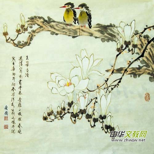 作為一名畫家,無論山水、花鳥、人物廣為涉獵,且能將寫景、敘事、抒情融為一體,意境開闊,章法自然,變化多端,靈活自如。從大處落筆,獨辟蹊徑,以勁健之筆描繪綺麗的景物,發(fā)掘出常人所未曾領略到的自然之美。畫中奇思壯采,爛漫激情,宏偉遼闊,氣勢磅礴。這種意境和難以琢磨的紛繁的藝術(shù)形象,都表現(xiàn)在畫家無比豐富的精神世界里。當你從她的畫境中甜蜜醒來時,不禁浮想聯(lián)翩,以致在眼前呈現(xiàn)出了一個富有詩情畫意的美麗世界。仿佛看到春秋時期,越國一位神采奕奕的少女來到一條溪水邊,走進一群穿著五顏六色衣裳的浣紗姑娘中間。那風姿、那神韻,是這般炫人眼球,如同開放在一片綠油油荷葉中的一朵亭亭玉立的白蓮,含蓄、蘊藉、清雅、尊貴,毫無矯造之勢。這就是她擅于創(chuàng)作畫里畫外優(yōu)美、動人的場面,給人飛動、流麗的藝術(shù)享受。達到這種獨特的藝術(shù)境界,手法創(chuàng)作是高超的。