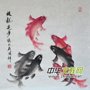 當(dāng)我觀看了楊順鋒先生畫的一幅幅栩栩如生,活靈活現(xiàn)以魚為背景的作品后,聯(lián)想到了這幾句詩。自古文人墨客喜魚愛魚,贊魚者不惜筆墨,留下了不少千古佳作。