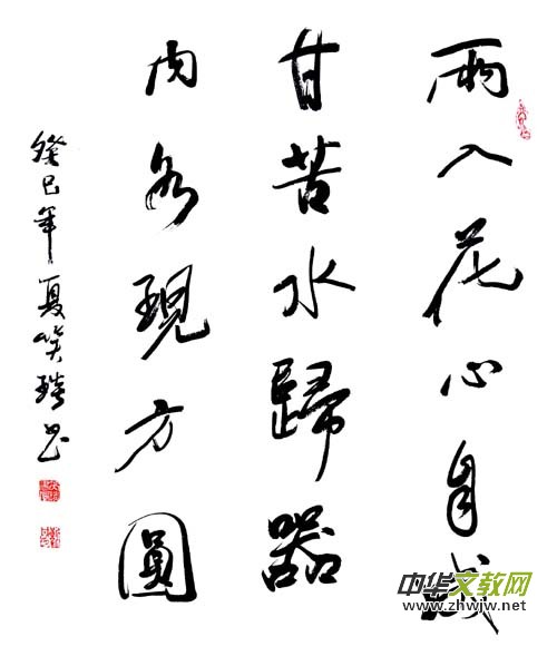 《作家報·藝術世界》主編、書法家楊紹穆先生曾在新國甲骨文個人書法展時賦詩一首:“安陽甲骨欲尋根,雨潤書法不同倫。點畫拙樸能膺古,抱殘守缺布局新。兼師南宮二王法,讀貼著述百家文。”