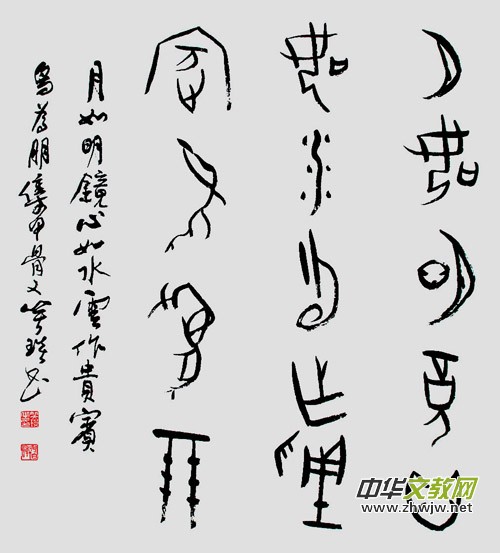 甲骨文書法:月如明鏡心如水,云作貴賓鳥(niǎo)為朋。
