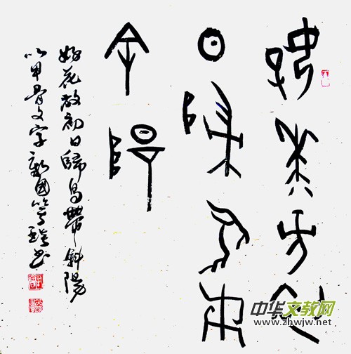 《作家報(bào)·藝術(shù)世界》主編、已故書(shū)法家楊紹穆先生曾在新國(guó)甲骨文個(gè)人書(shū)法展時(shí)賦詩(shī)一首:“安陽(yáng)甲骨欲尋根,雨潤(rùn)書(shū)法不同倫。點(diǎn)畫(huà)拙樸能膺古,抱殘守缺布局新。兼師南宮二王法,讀貼著述百家文。”