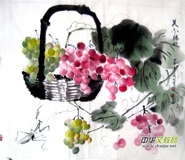 漠風(fēng)的工筆畫清新典雅,給人一種春光燦爛的感覺。風(fēng)格即人,她的作品是她心靈的寫照。其特色是在奇特中見穩(wěn)健,在典雅處見含蓄,在工細(xì)處見精到,有“清新之風(fēng),華滋之氣”,給人以金聲玉振的藝術(shù)美感。在她的《佳人國色》、《蝶戀花》《三月牡丹醉花城》、《春光爛漫》等作品中,沒有甜俗之色,沒有落套之姿。她領(lǐng)悟了造化之心,渲染了花卉之情,霧露中的蔓陀羅,象半展面紗的村姑,細(xì)雨中的牡丹,象含淚的新娘。她喜歡荷的品格,荷花在她的筆下總是清新怡人、生機(jī)勃勃、奮爭向上;她喜愛葡萄豐富的色彩,葡萄在她的筆下更是晶瑩剔透、絢麗多姿。