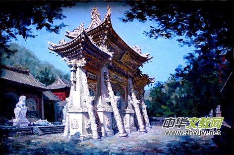 《五臺山龍泉寺》 油畫 2008年