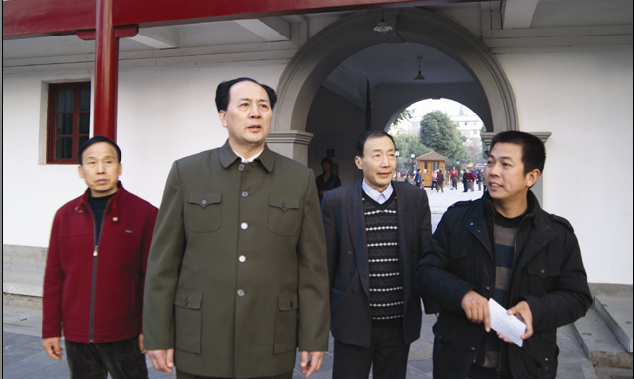 中國現(xiàn)代醫(yī)學(xué)研究院副院長、北京寫作學(xué)會教育科學(xué)委員會副會長兼秘書長林臏與毛澤東(扮演者許國寅)在武漢調(diào)研
