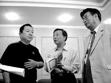 2004年央視主持人董浩、民俗專家趙書和詩(shī)人閃世昌熱議宣師一附小新童謠,出謀劃策