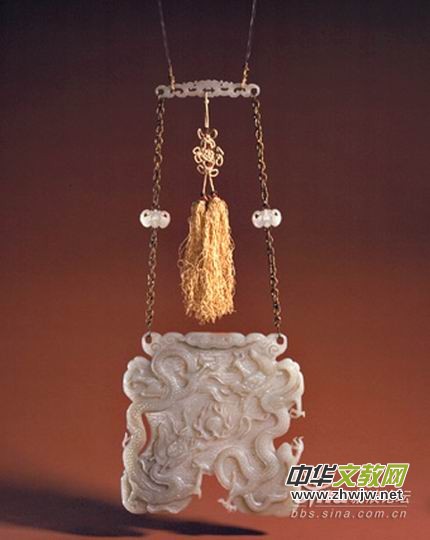 玉人物龍紋磬,明中期,長20.4cm,寬20.1cm,厚0.9cm。清宮舊藏。