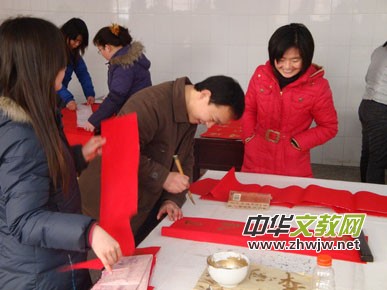 本報(bào)訊 翰墨飄香,龍飛鳳舞,為豐富校園文化生活,喜迎新春佳節(jié),1月28日,在新春來(lái)臨之際,河南省安陽(yáng)市龍安高中藝術(shù)組在藝術(shù)樓書(shū)法教室為全校教職工義寫(xiě)春聯(lián),現(xiàn)場(chǎng)氣氛熱烈,年味十足。此活動(dòng)既提高了學(xué)校教師的書(shū)法水平,同時(shí)也為全校教師送去了新春祝福。