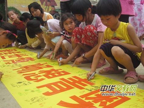 連日來,南京工業(yè)大學(xué)志愿者來到盱眙縣希望小學(xué),開展了聚焦世博、暢想青奧,讓家園生活更美好主題活動(dòng),通過表演、趣味比賽等形式,豐富鄉(xiāng)村留守兒童的生活。圖為孩子們?cè)?/FONT>聚焦世博、暢想青奧橫幅上簽名、繪畫。(陳佳男 孔繁芮 莊鵬程 攝)