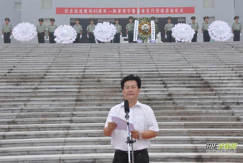 本報訊(記者 任富麗) 8月15日,首期“紀念抗戰(zhàn)勝利65周年——將軍學子魯南老區(qū)行”活動在山東省滕州市魯南人民抗日武裝起義紀念館啟動。濟南軍區(qū)原副司令員、濟空原司令員郭玉祥中將,北京軍區(qū)空軍原政委蒲榮祥中將等15位將軍應(yīng)邀出席啟動儀式。