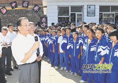 溫家寶在河北興隆縣六道河中學(xué)與師生共度教師節(jié)
