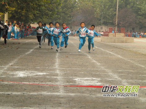本報訊(記者 李翠蘋  朱林喜/攝)20101015日,山東省濟(jì)寧市任城區(qū)濟(jì)東第一小學(xué)第三屆秋季田徑運動會正式拉開帷幕。本次運動會尊崇“每天鍛煉一小時,健康生活一輩子”的理念,運動會增加了學(xué)生積極參加體育鍛煉的機(jī)會,增強(qiáng)了學(xué)生的身體素質(zhì),為五育中的“體育”教育教學(xué)工作做了很好的輔助作用。圖為小學(xué)生們沖刺在跑道上。