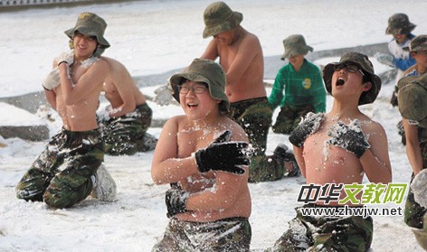 中新網(wǎng)報(bào)道2010年 12月27日,韓國(guó)安山島Daebu的新兵訓(xùn)練營(yíng)內(nèi),部分韓國(guó)中小學(xué)生赤膊在雪地中進(jìn)行軍事訓(xùn)練。