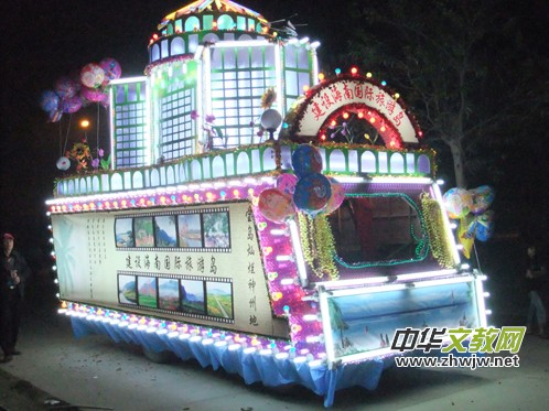 參展花燈造型別致,具有濃郁的地方色彩,反映了海南建省以來城鄉(xiāng)面貌發(fā)生了翻天覆地的變化,表達(dá)了人民群眾祝福祖國繁榮昌盛,渴望幸福安康的生活的美好愿望。