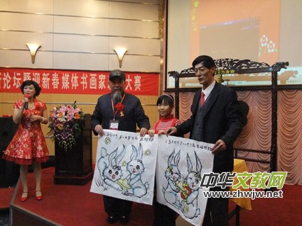 靳紫夢(mèng)畫的招財(cái)福兔送給了會(huì)場(chǎng)的兩位壽星