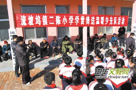 本報(bào)訊 3月3日,山東省陽信縣流坡塢鎮(zhèn)二陳小學(xué)30余名師生帶著禮品,來到了流坡塢鎮(zhèn)養(yǎng)老院,給老人梳頭、洗臉、擦玻璃、掃院子,還帶去了自編自演的文藝節(jié)目和祝福老人的書法、書畫作品,給老人帶去了愉快和歡樂。陽信縣電視臺(tái),流坡塢鎮(zhèn)政府領(lǐng)導(dǎo)和中心校領(lǐng)導(dǎo)參加了整場(chǎng)活動(dòng)。 (通訊員:陳樹三 攝影:楊普元)