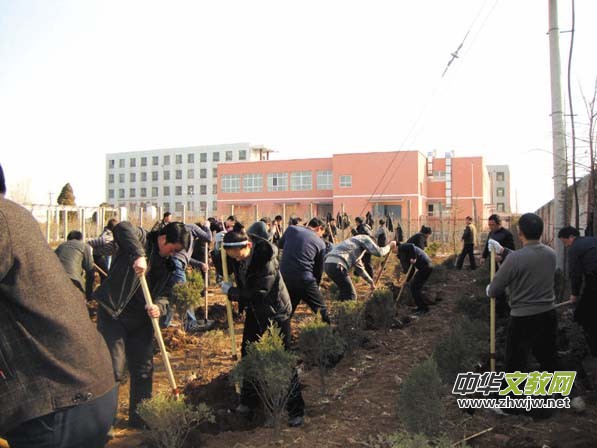 本報訊  3月12日下午, 為積極開展創(chuàng)先爭優(yōu)活動,創(chuàng)建和諧綠色校園,河南省安陽縣職業(yè)中專全體黨員及校領(lǐng)導(dǎo)在學(xué)校實驗種植園進行了植樹活動。同志們你爭我先,干得熱火朝天,為全校師生作了很好的榜樣。 (劉晨霞 )