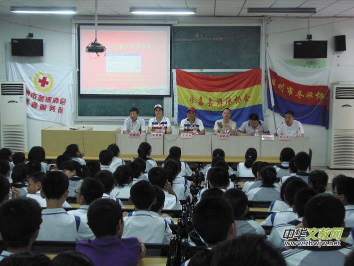 本次講座,特邀溫州市游泳協(xié)會(huì)主席王建敏同志、溫州市冬泳協(xié)會(huì)秘書(shū)長(zhǎng)、溫州醫(yī)學(xué)院附二醫(yī)張春梅博士、永嘉縣游泳協(xié)會(huì)會(huì)長(zhǎng)張紹達(dá)同志為師生們作精彩的講座。