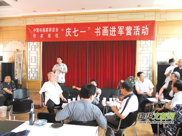 本報訊 5月5日,由中國書畫家聯(lián)誼會、作家報、慶祝建黨90周年首屆“長星杯”全國書畫百杰精品大獎賽組委會組織的書畫家進軍營活動在解放軍總后勤油料研究所舉行, 油料研究所所長楊廷欣和政委蔡民基及在京書畫家沈鵬正舉、肖良平、謝銳、蕭肅、馬藝文、靳新國、劉鑫、何江、吳山、馮瑞林、陳溪峋、西北龍、蘇建鑫、林貴春、劉志平、袁建明、姜淑紅、馬牧、李廣效等三十余位著名書畫家到會揮毫潑墨,創(chuàng)作出一幅幅佳作。本次活動對于弘揚民族傳統(tǒng)文化、豐富部隊官兵文化生活起到積極的作用。