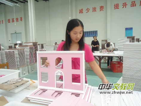 本報訊 山東省定陶縣陳集鎮(zhèn)是全國聞名的農(nóng)產(chǎn)品加工出口生產(chǎn)基地,目前已形成裘皮服裝、羊毛地毯、皮毛玩具、工藝玩具等板塊經(jīng)濟,產(chǎn)品遠銷10多個國家和地區(qū)。最近幾年,鎮(zhèn)里重點扶持了8家出口創(chuàng)匯的民營企業(yè),安置周邊村莊2600多名育齡女青年家門口就業(yè),人均月收入達2000元以上。圖為好多億公司的員工正在制作出口美國的小房子工藝品。 (本報記者 苑肇波 攝)
