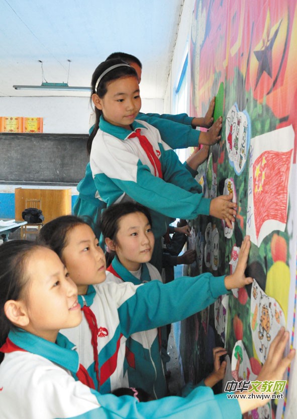 本報訊 在國慶62周年到來之際,山東省桓臺縣索鎮(zhèn)耿橋小學(xué)少先隊組織62名隊員代表,畫寫出62幅祝福祖國更加繁榮富強(qiáng)、人民更加幸福安康、民族更加和睦團(tuán)結(jié)、少先隊員更加健康成長、生活環(huán)境更加優(yōu)美溫馨的美好心愿卡張貼在少先大隊的“祝愿祖國更美好的專題專欄”前,以此表達(dá)少先隊員的愛國熱情和對祖國的良好祝愿。圖為該校少先隊員在專欄張貼自己美好祝愿卡時的情景。 (項緒忠 張經(jīng)林 陳緯)