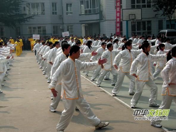 展示大會(huì)的重頭戲是“24式太極拳集體展示”。全區(qū)一千多名教師分十組展示了“24式太極拳”。龍安區(qū)教體局歷來重視體育工作,不僅體育成績(jī)?cè)谌蓄I(lǐng)先,教師體育鍛煉也常抓不懈。這次健身展示大會(huì)的舉辦,就是落實(shí)該區(qū)教體局“每天鍛煉一小時(shí),健康工作五十年,幸福生活一輩子”理念的有效舉措。圖為教師們正在進(jìn)行太極拳展示。 (本報(bào)駐地記者 汪重陽(yáng)/文、圖)