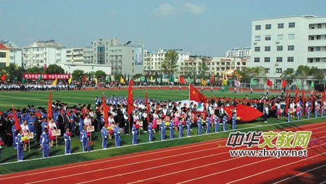創(chuàng)運動佳績,展青春風采。10時整,一場以“魅力永修、快樂校園”為主題的大型文體表演在永修一中團體操《三色夢想》的表演中拉開序幕。在悠揚的旋律中,196名學生將手中的魔扇巧妙地幻化為一片三色斑斕的世界,幻化成一本巧奪天工的大書,令人目不暇接。隨后,永修三中學生帶來的校園集體舞《青春旋律》,融明快的節(jié)奏和優(yōu)美的舞姿為一體,形象演繹了陽光體育給校園帶來的動感活力;永修縣職教中心學生表演的《讓我們舞起來》,彩綢翩翩飛舞,舞出了青春少女的嬌美和自信,舞出了當代中學生的豪邁與激情;永修縣外國語學校169名靚麗、活潑的女生們組成的啦啦操表演《Mrkara》,激情四射,魅力無限,在陽光的照耀下,彩飄金光閃閃,展現(xiàn)出朝氣蓬勃、健康向上的精神風貌;永修二中324名學生的團體操《超越夢想》表演氣勢磅礴,場面壯觀,演繹出唐風漢骨、燕趙高歌,歡快的動作和巧妙的隊形變換向大家詮釋了本屆賽會的主題。最后,5個表演團隊的上千名小演員匯聚成綠茵場上一道亮麗的風景,將整場文體演出的氣氛推向了高潮,把現(xiàn)場觀眾的激情再次點燃。