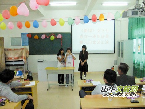 本報訊 一年的風(fēng)雨兼程,終于迎來了她一周年的生日。樂東縣邵逸夫中學(xué)新綠文學(xué)社成立一周年慶典暨元旦文藝匯演于12月31日下午4時20分在該校新教學(xué)樓一樓多媒體教室隆重舉行。該校領(lǐng)導(dǎo)、來賓、新綠文學(xué)社全體成員及兄弟社團(tuán)代表共130人參加了慶典活動。