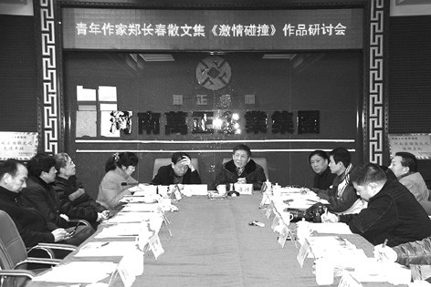 本報(bào)訊 3月3日,豫陜兩地作家、文學(xué)評(píng)論家、文化界名流匯聚一堂,共同探討青年作家鄭長(zhǎng)春的散文新作《激情碰撞》。這次研討會(huì)由南陽(yáng)市文聯(lián)、市作家協(xié)會(huì)主辦,河南萬(wàn)正企業(yè)集團(tuán)協(xié)辦。散文集《激情碰撞》,是鄭長(zhǎng)春從事創(chuàng)作近20年來(lái)的第一本散文集,所收錄的作品全部在各大報(bào)刊發(fā)表過(guò),大多是作者精選后的獲獎(jiǎng)作品。著名作家、河南省作家協(xié)會(huì)名譽(yù)主席、南陽(yáng)市作家協(xié)會(huì)主席二月河,著名作家、河南省作家協(xié)會(huì)副主席、南陽(yáng)市人大主任李天岑對(duì)研討會(huì)的召開(kāi)表示祝賀,河南萬(wàn)正企業(yè)集團(tuán)董事長(zhǎng)畢竟致辭,著名作家、河南省南陽(yáng)市作家協(xié)會(huì)秘書(shū)長(zhǎng)劉正義主持,著名作家秦俊、廖華歌、王遂河、周同賓、逵富太、宋云奇,文學(xué)評(píng)論家孫曉磊,青年作家水兵、楊維永、宋長(zhǎng)寬、馬東偉、魯釗、喬峰、李蛟龍飛、史飛翔、周迎春、田建國(guó)等四十余位人士參加了研討會(huì)。這是繼他去年在西安召開(kāi)《激情碰撞》首發(fā)式后的又一次高規(guī)格文學(xué)研討活動(dòng)。