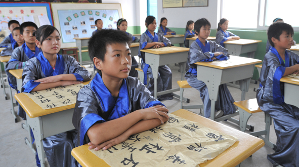 本報(bào)訊 近日,河北邯鄲縣各學(xué)校以“回顧華夏經(jīng)典、傳承精粹文化”為理念,興辦了國(guó)學(xué)班,開(kāi)設(shè)書(shū)法、繪畫(huà)、三字經(jīng)、弟子規(guī)、禮學(xué)等科目,引起孩子們濃厚興趣,紛紛報(bào)名參加學(xué)習(xí)。據(jù)了解,該縣各學(xué)校成立了國(guó)學(xué)班、國(guó)學(xué)社,讓學(xué)生穿漢服、背三字經(jīng)等。國(guó)學(xué)教育也深受家長(zhǎng)們的歡迎,一家長(zhǎng)李先生表示,對(duì)孩子進(jìn)行傳統(tǒng)禮儀、廉恥教育能提高孩子的整體素質(zhì),將對(duì)孩子的人生觀、道德觀起到積極作用。圖為該縣工程學(xué)校書(shū)法社學(xué)生在上課。
