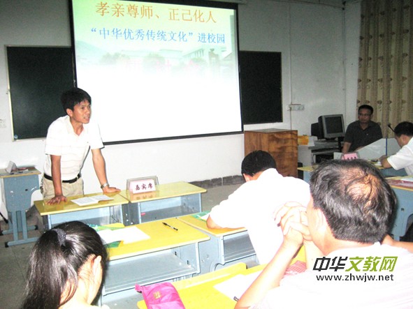 該校于2011年初獲批了國家教師科研基金“十二五”規(guī)劃全國重點(diǎn)課題《中小學(xué)學(xué)力素質(zhì)水準(zhǔn)新課堂教學(xué)與研究》子課題《挖掘?qū)W科潛能,培養(yǎng)學(xué)生良好行為品質(zhì)》研究。在課題組長黃富淵校長的帶領(lǐng)下,各學(xué)科教師八仙過海,各顯神通,充分發(fā)揮本學(xué)科德育因素,以學(xué)習(xí)中華優(yōu)秀傳統(tǒng)文化《子弟規(guī) 》為載體,把培養(yǎng)學(xué)生良好行為品質(zhì)活動開展得轟轟烈烈、有聲有色。每天利用20分鐘晚讀組織學(xué)生選讀《大學(xué)》《論語》《弟子規(guī)》《增廣賢文》等名句、名段;平時(shí)讓學(xué)生觀看精心制作的《弟子規(guī)》“24”孝板報(bào),并組織討論、引導(dǎo)踐行:回家給父母倒水洗腳,分擔(dān)家務(wù);在校為教師辦公室擦洗門窗,同學(xué)之間互相禮讓;走出校門到古城去做義務(wù)勞動等;校園內(nèi)外,好人好事,蔚然成風(fēng),因而博得政府、群眾的感動和好評。為鼓勵和嘉獎師生大力宣傳、踐行中華傳統(tǒng)文化行為,該鎮(zhèn)首富李懷芳、黃春風(fēng)等組織其它愛心人士共捐資2.5萬元,為學(xué)校購買大型彩電、音響,印制《弟子規(guī)》4000多本,刻錄光盤3000多張,免費(fèi)贈送給鎮(zhèn)內(nèi)中小學(xué)師生及廣大群眾。