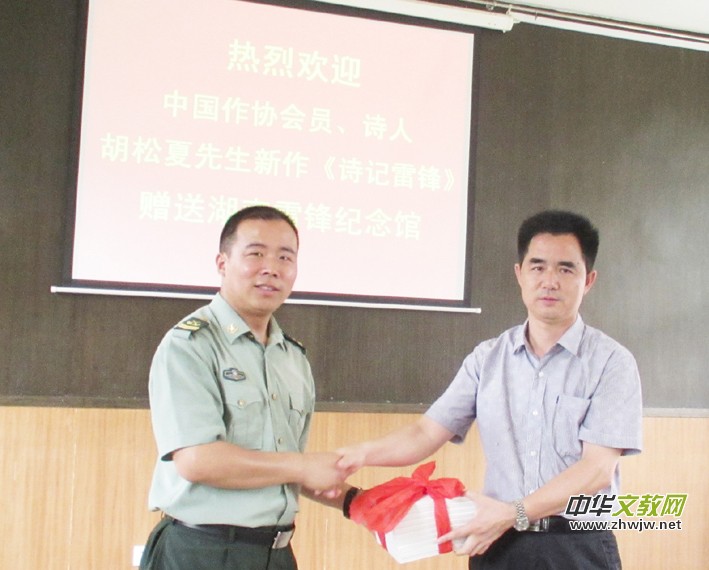 本報(bào)長(zhǎng)沙6月16日訊 今天下午,中國作家協(xié)會(huì)會(huì)員、“80后”戰(zhàn)士詩人胡松夏專程從北京來到長(zhǎng)沙市望城區(qū),向湖南雷鋒紀(jì)念館贈(zèng)送其新作《詩記雷鋒》。雷鋒紀(jì)念館館長(zhǎng)陳亮偉、中國鄉(xiāng)土詩人協(xié)會(huì)副會(huì)長(zhǎng)鐘長(zhǎng)弓、華語紅色詩歌促進(jìn)會(huì)副會(huì)長(zhǎng)蔡詩華等出席了贈(zèng)書儀式。