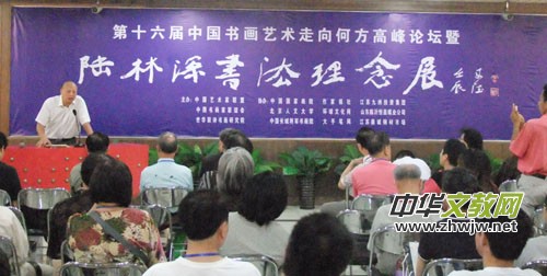陸林深在研討會上作了關(guān)于書法發(fā)展“五個改變”的演講:第一、“思維模式”的改變,要把什么都往老祖宗那里靠的萎縮性思維改變成吸收老祖宗的東西,然后向外發(fā)射,形成無數(shù)線條的發(fā)散性思維;第二、“心智模式”的改變,要把訓(xùn)化的程式化心智向兒童的心智模式改變。陸林深提出的書法童心說就是講心智要像兒童那樣,天真、純真、率真,這才能達到書法回歸自然的更高境界;第三、“操作模式”的改變,把過去只能用中鋒,抓筆要緊等老的教條主義操作模式改變成自由自然的操作狀態(tài);第四、“研究模式”的改變,研究是要有方法的,研究方法路徑直接影響研究結(jié)果,陸林深擺脫了純理論的研究,從社會學(xué)、行為學(xué)、心理學(xué)等方面來研究書法,取得了新的成果,并用它來指導(dǎo)書法實踐,創(chuàng)作出許多的杰出作品;第五、“普及模式”的改變,猶像足球一樣,如果沒有群眾性的普及做基礎(chǔ),金字塔的塔尖就建不起來,書法同樣,沒有普及就不能有頂尖。